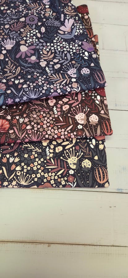 MYO Design Baumwoll Twill / Canvas mit unserer schönen Blumenwiese in dunkelblau mit lila, flieder und altrosa Blümchen
