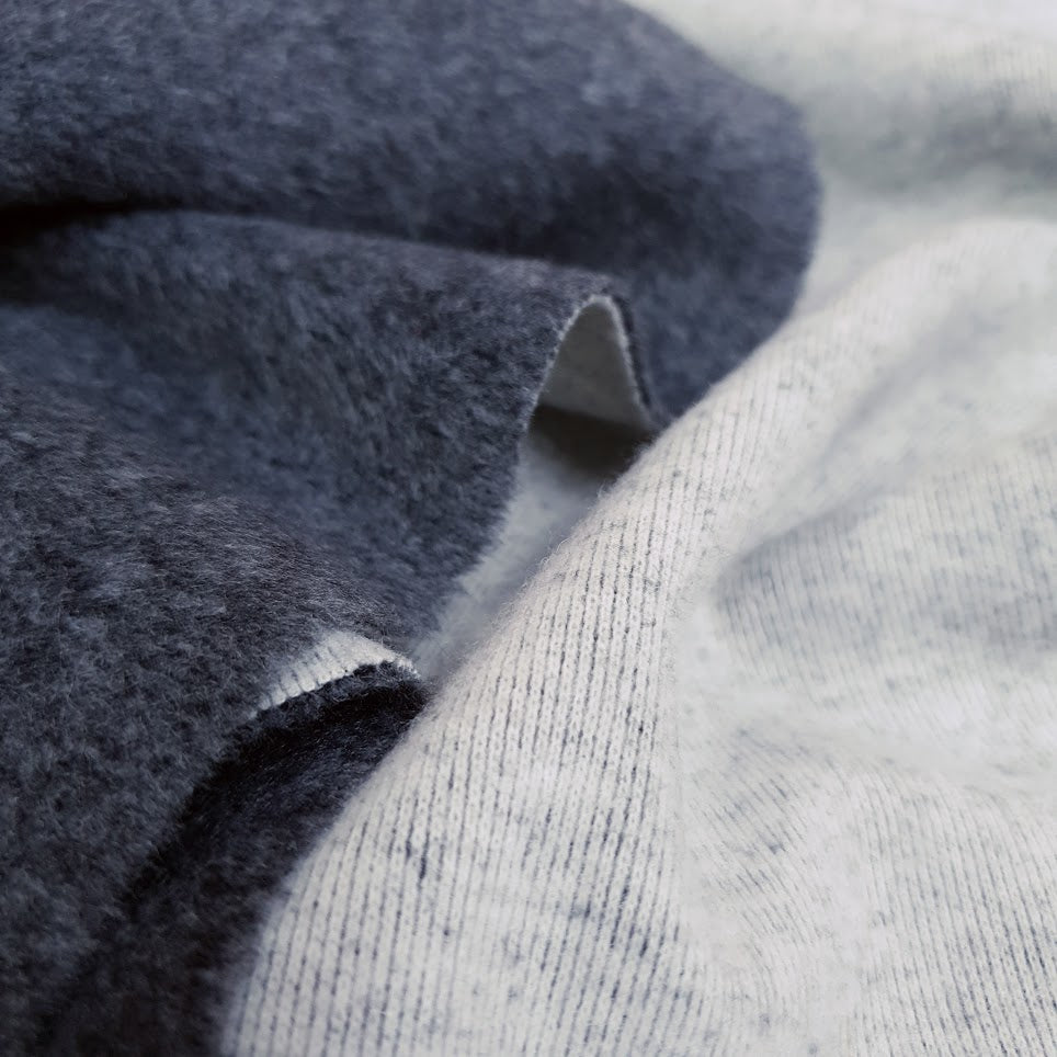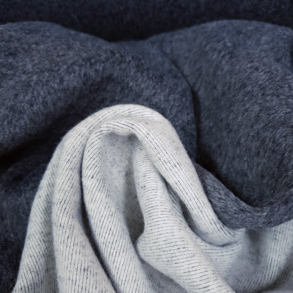 Dicker, weicher Wolloptik Doubleface - eine Seite ist fleeceartig, kuschlig, die zweite Seite gestrickt in hellem ecru - beide Seiten meliert