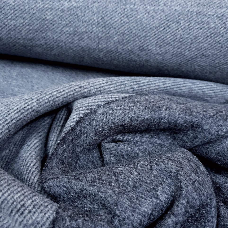 Dicker, weicher Wolloptik Doubleface - eine Seite ist fleeceartig, kuschlig, die zweite Seite leicht gestreift in dunkelblau - beide Seiten meliert